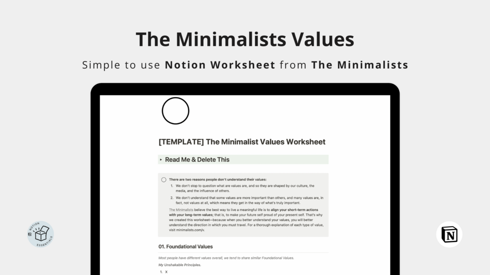 I have converted The Minimalists' values PDF worksheet into a Notion worksheet so that you can incorporate it into your own Notion System.
